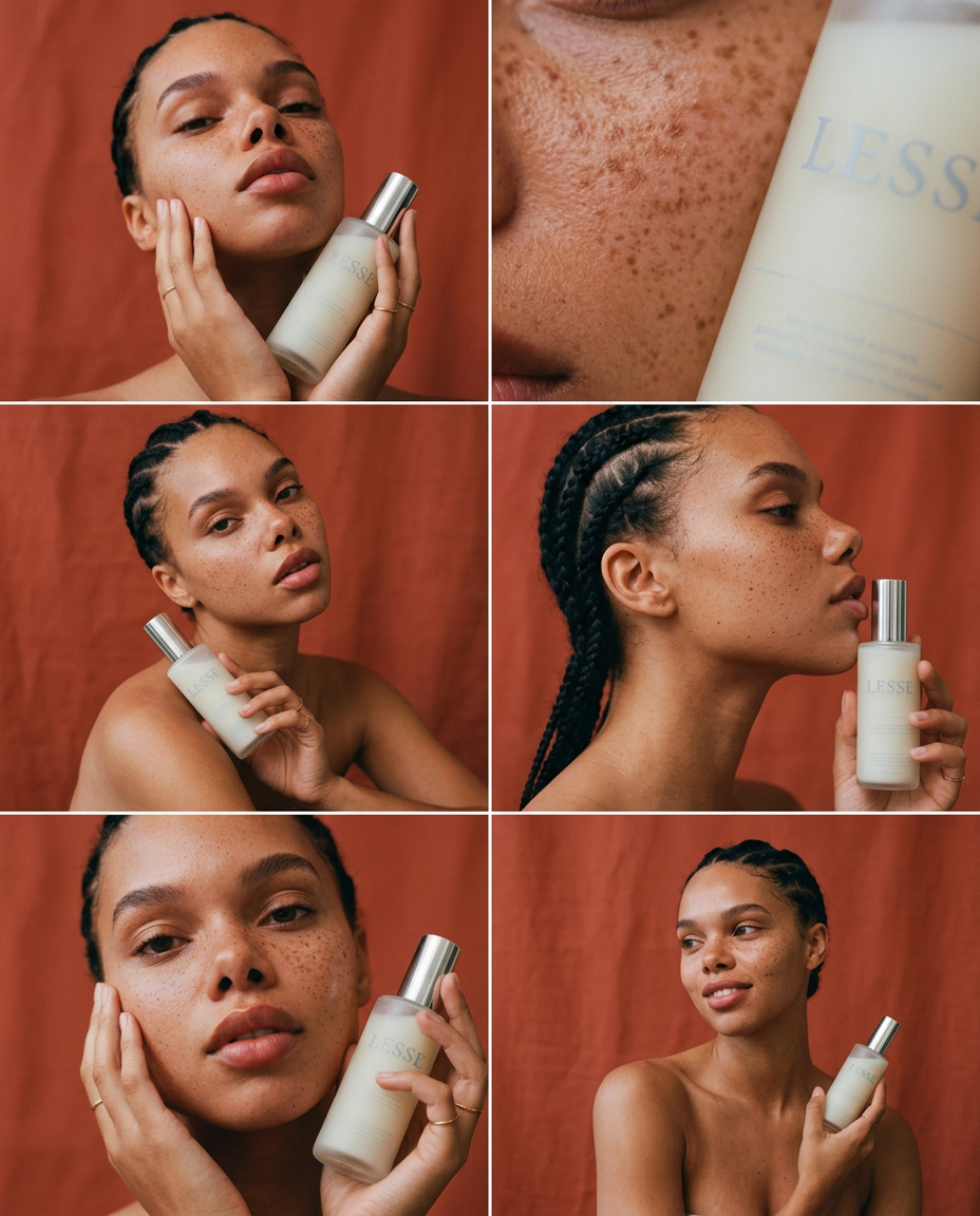 This conceptual AI campaign for LESSE explores the idea of distillation—of ingredients, of process, of truth. Built on a foundation of rigorous testing and clinical advancement, the work visualizes skincare as a system of precision, where every element is intentional and every formulation is engineered for performance.